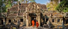 11:00: Rời đền Bayon, tiếp tục hành trình tour tham quan khám phá quần thể Angkor Wat, bạn sẽ đến với ngôi đền Ta Prohm cổ kính và kỳ bí. Đền Ta Prohm có tuổi đời hơn 1000 năm và được xây dựng từ thời đại đế chế Khmer. Xung quanh ngôi đền Ta Prohm được bao phủ bởi những rễ cây cổ thụ khổng lồ bám trên những bức tường thành đã khiến cho nơi đây càng thêm phần bí ẩn. Khi tham quan ngôi đền Ta Prohm, bạn sẽ có cảm giác như được bước vào một thế giới tâm linh, huyền bí.